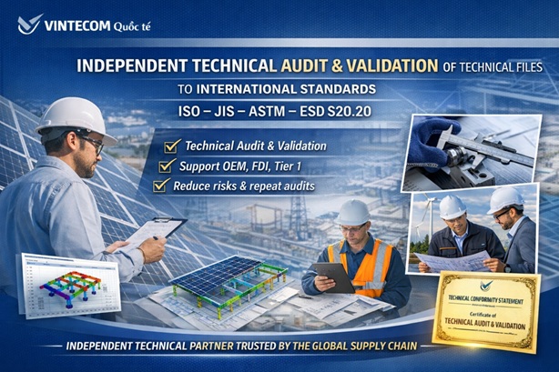 VINTECOM International provides Independent Technical Audit & Validation and Technical Dossier Review Services in accordance with international standards (ISO, JIS, ASTM, ANSI/ESD S20.20)
